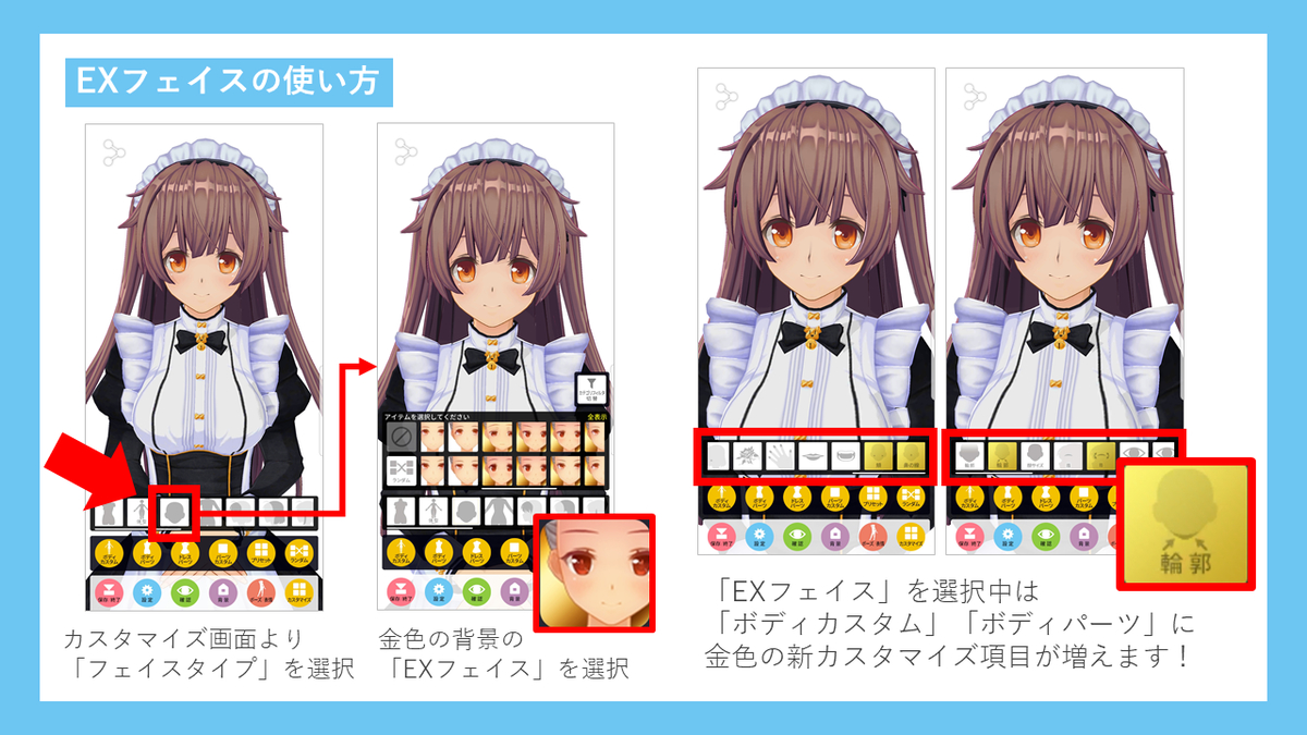 ■EXフェイスを使うと何ができるの?EXフェイスで拡張されるカスタマイズについてはコチラの画像にまとめたのでご確認ください!
