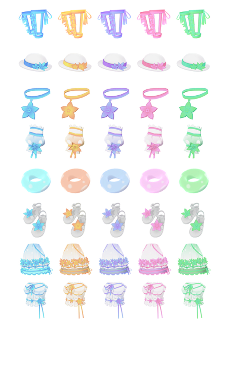 ※【リボンフリル水着セット】【ヘッドアクセセット】は過去のミッション報酬の復刻アイテムです。既にお持ちのアイテムを重複購入されないようご注意ください。